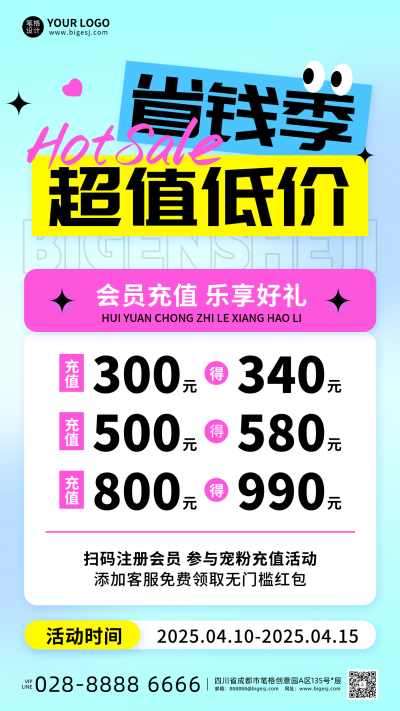 省钱季活动促销简约弥散风海报