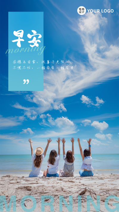 早安日签海边实景宣传海报