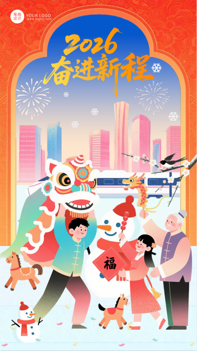 2026卡通元旦祝福插画海报