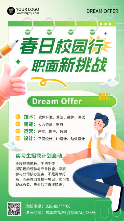 春季校招面试求职渐变插画海报