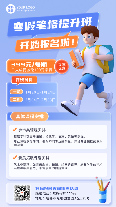 寒假提升班教育培训宣传海报