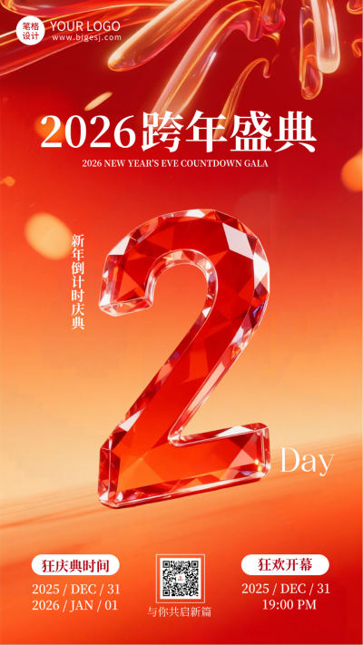 跨年倒计时2天玻璃质感海报