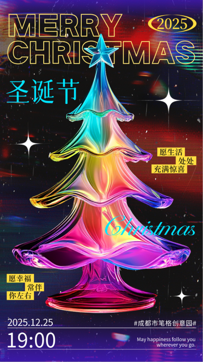 圣诞节霓虹色祝福海报