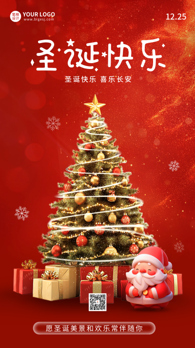 圣诞快乐3D祝福海报