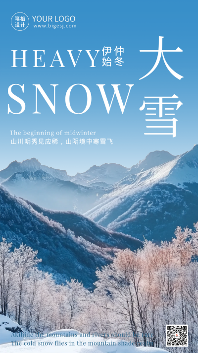大雪节气雪山实景海报