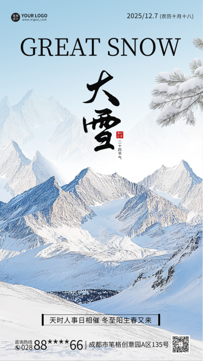 大雪节气实景祝福海报