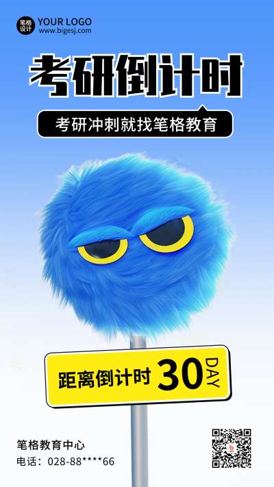 考研倒计时兴趣班招生趣味海报