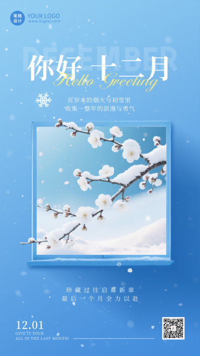 清新文艺十二月你好日签海报