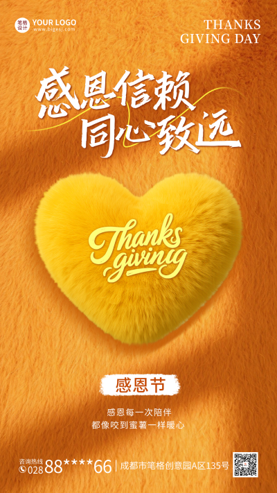 感恩节毛绒风祝福海报