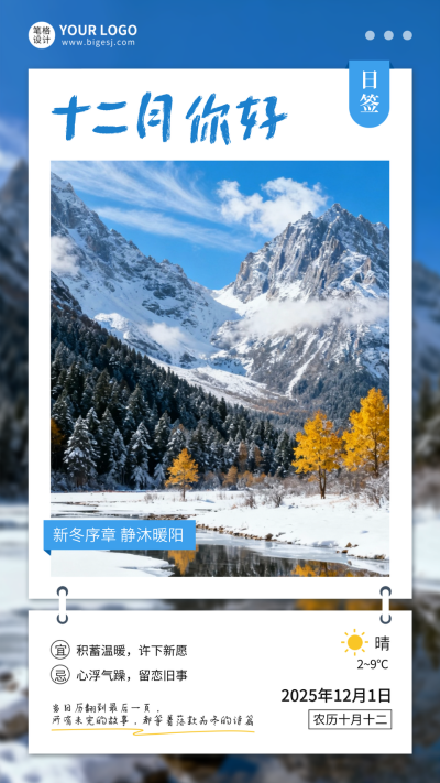 十二月你好日签祝福海报