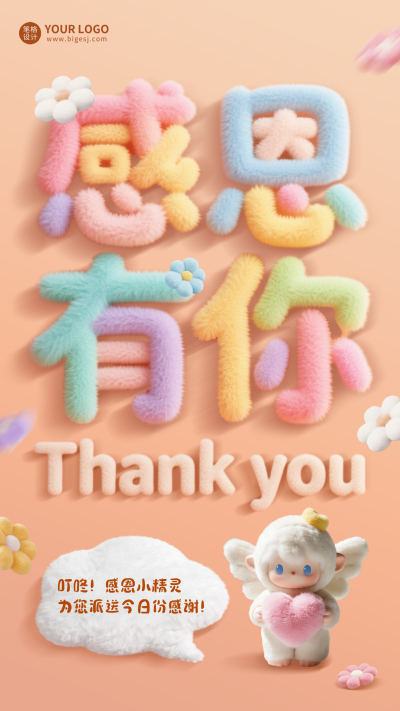 感恩节3D毛绒风祝福海报