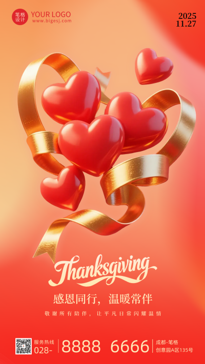 红色简约感恩节节日祝福海报