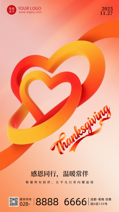 红色简约感恩节节日祝福海报