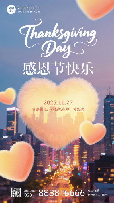城市实景感恩节节日海报