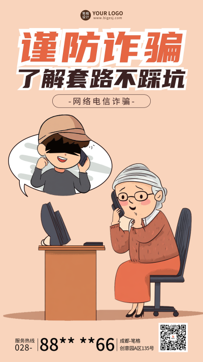 谨防诈骗趣味卡通海报