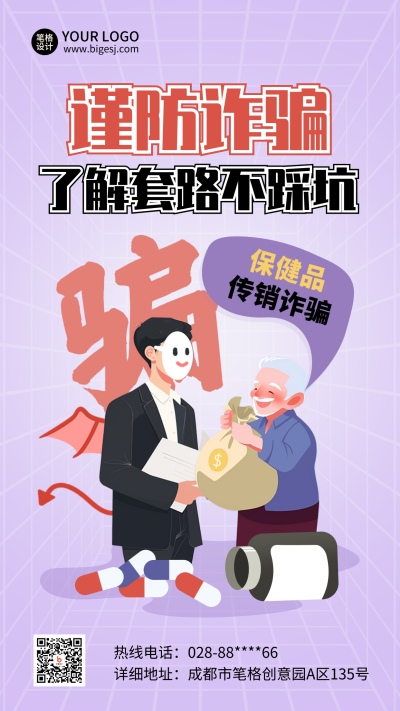 电信诈骗注意事项小技巧手绘海报