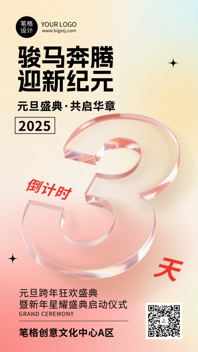 元旦节倒计时3天玻璃质感简约海报