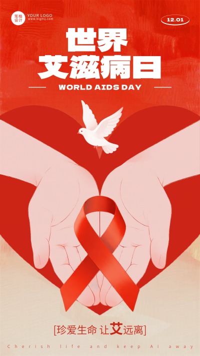 红色质感艾滋病日宣传海报