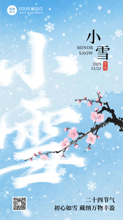 蓝色简约小雪节气海报