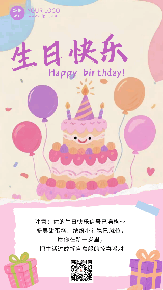 趣味手绘生日蛋糕祝福动态海报