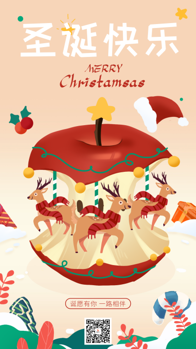 圣诞节手绘祝福宣传海报