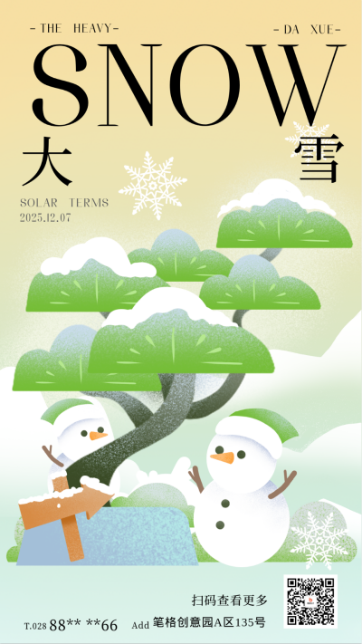 大雪节气可爱手绘宣传海报