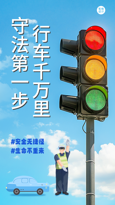 蓝色简约交通规则科普海报