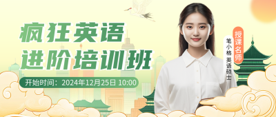 英语进阶培训班宣传中国风公众号首图
