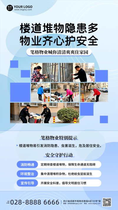 蓝色简约物业安全提示海报