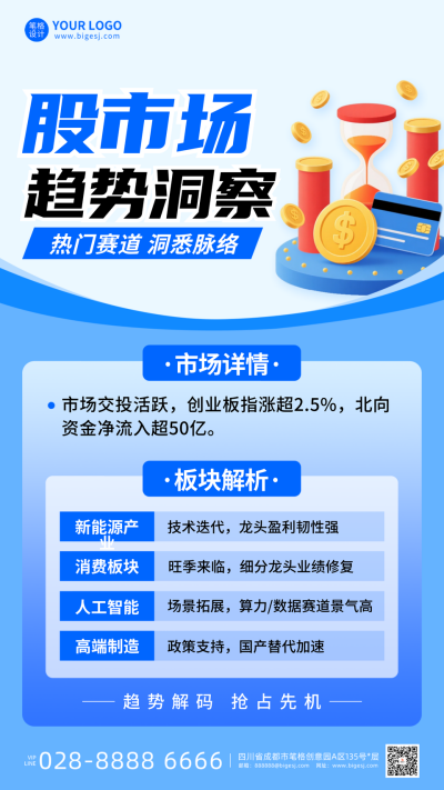 蓝色简约股票市场趋势解读海报