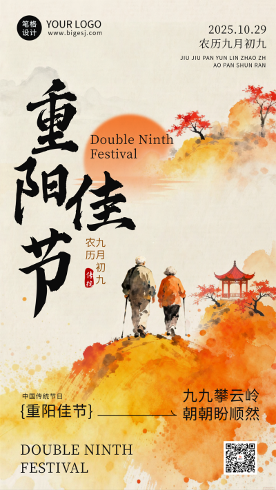 中国风水墨重阳节祝福海报