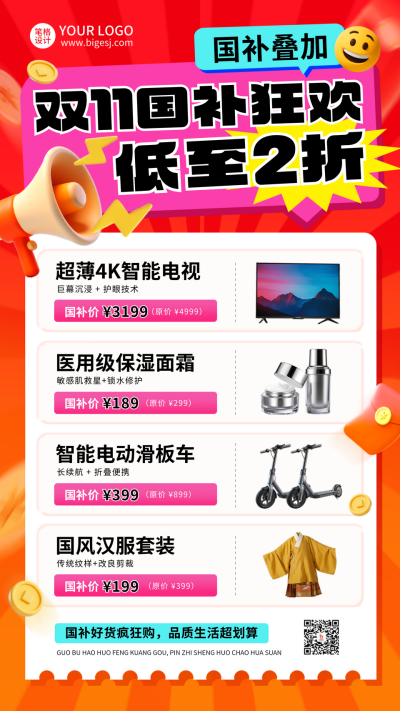 双十一电商促销国补好物福利海报