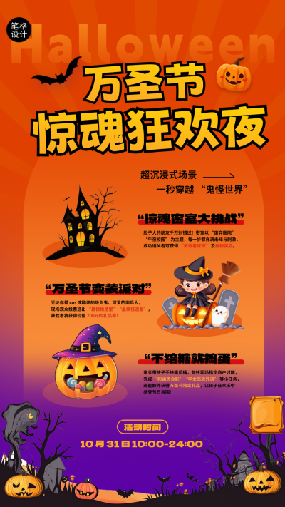 橙紫色可爱风万圣节活动宣传海报