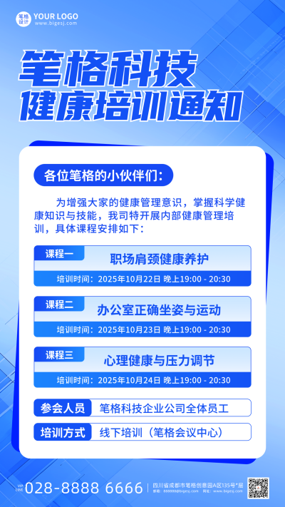 蓝色简约企业健康管理培训通知海报