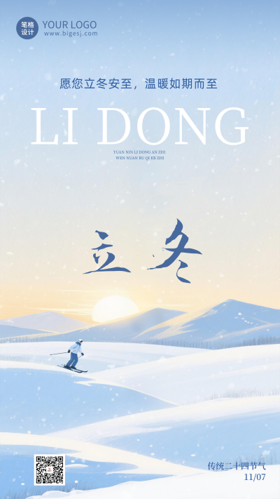 蓝色简约插画风立冬节气海报