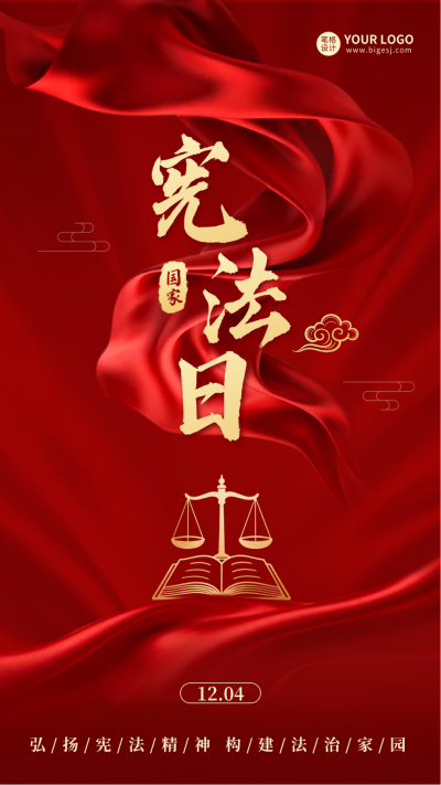 国家宪法日宣传红色海报