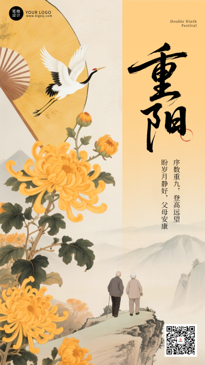 重阳节手绘风祝福手机宣传海报