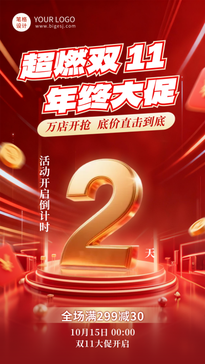 双十一电商活动倒计时海报