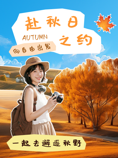 秋季出游简约小红书封面