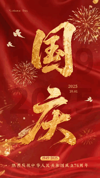 国庆节大气鎏金书法字祝福动态海报