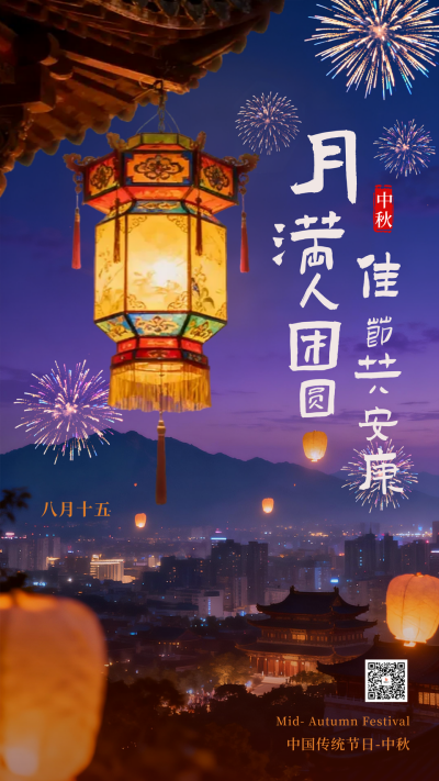 中秋节实景烟花祝福海报