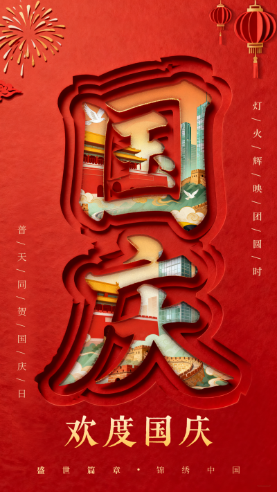 剪纸风国庆祝福海报