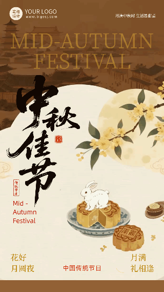 中秋节手绘祝福动态海报