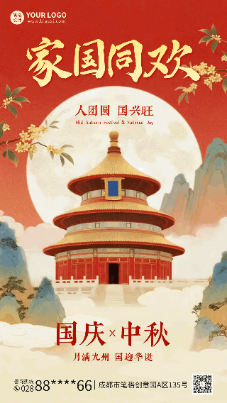 国庆中秋双节同庆手绘中国风动态海报