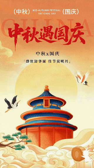 橙黄色插画风国庆中秋双节动态海报