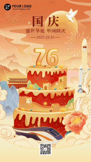 国庆节手绘蛋糕祝福宣传动态海报