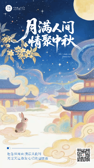 中秋节手绘可爱动态海报