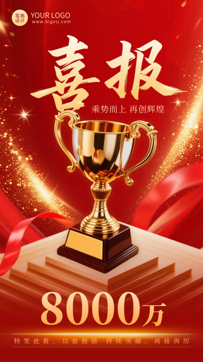 红色喜庆业绩表彰海报