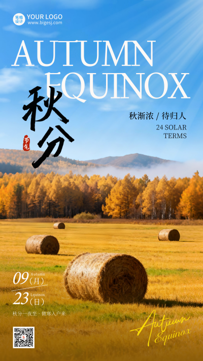 秋分节气实景宣传海报