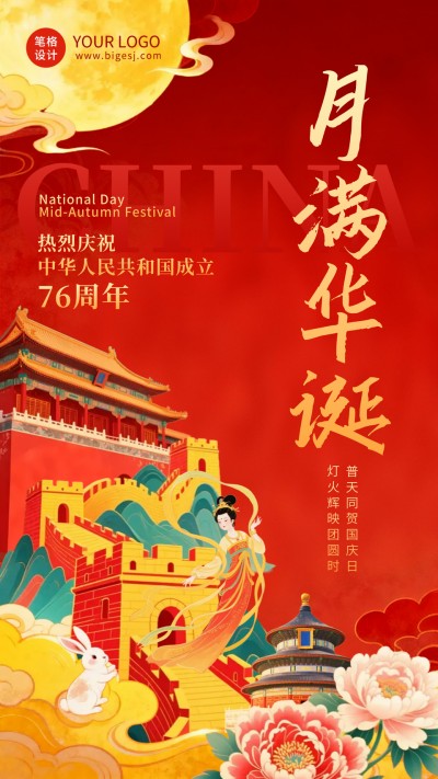 国庆中秋双节同庆海报